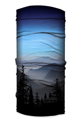 La grafica proposta per questo modello di scaldacollo si ispira al mondo della montagna, ricreando in vettoriale l'immagine di un paesaggio.