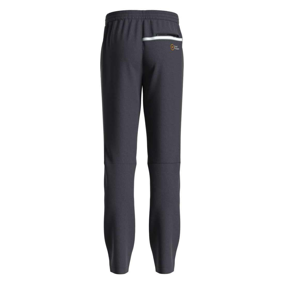 Il pantalone ha due tasche nella parte frontale e una pratica regolazione con coulisse in vita.