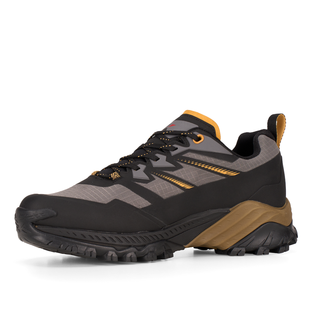 Ampie zone ben tassellate in punta e tacco per un maggior grip su sterrato e discesa, mentre la parte centrale è scolpita per un miglior controllo su superfici lisce o scalette; infine, il posizionamento dei tasselli consente ottima trazione e stabilità in ogni situazione.