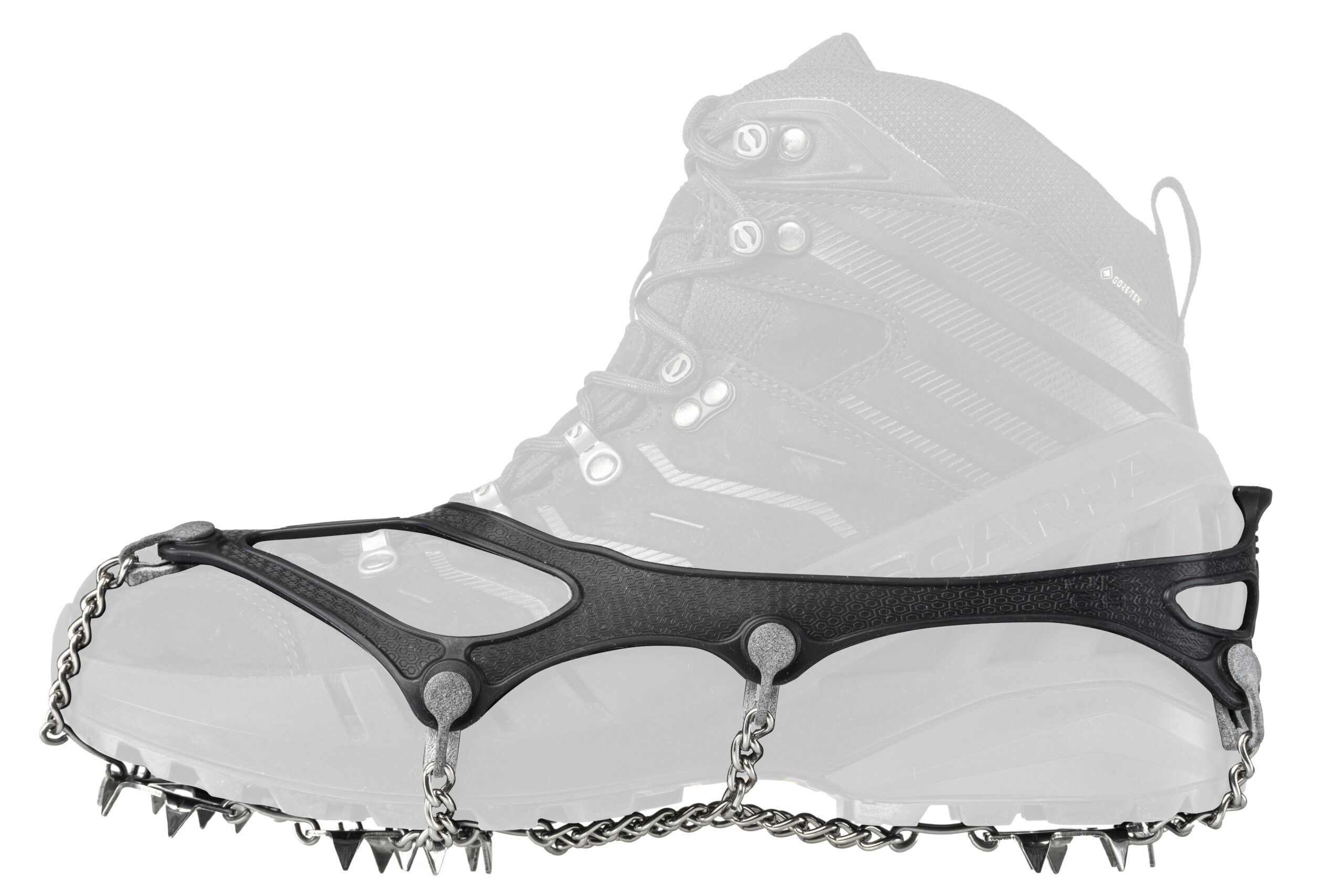 I connettori tra elastomero e micro ramponi consentono una migliore calzata e permettono di sostituire l‘elastomero in caso di danni accidentali