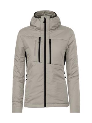 L'imbottitura è costituita da poliestere 100% riciclato da bottiglie PET, un materiale che offre un'elevata capacità isolante pur rimanendo leggero e soffice. Inoltre, la giacca è dotata di un cappuccio integrato, perfetto per proteggere la testa dal vento freddo, e una coulisse regolabile sul fondo, che permette di adattare il fit per una migliore protezione contro le intemperie.