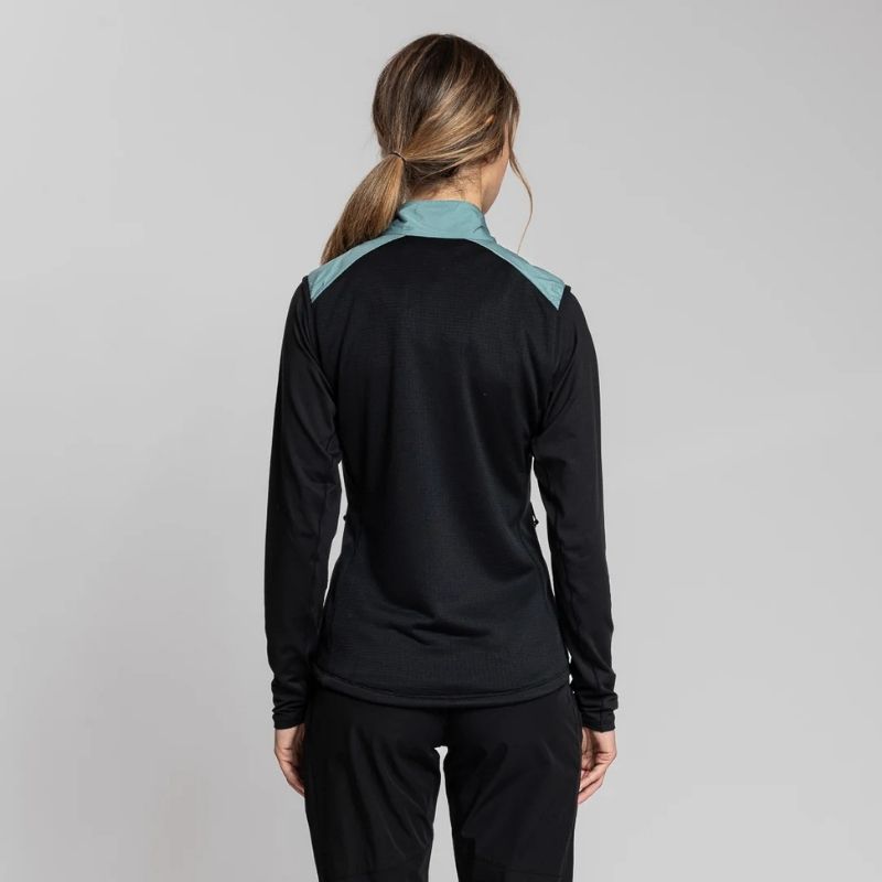 La struttura combina un fleece a griglia spazzolata con inserti in ripstop leggero su collo, spalle e parte frontale. Il fleece trattiene il calore corporeo creando micro-camere d’aria, mentre favorisce la dispersione dell’umidità durante lo sforzo.