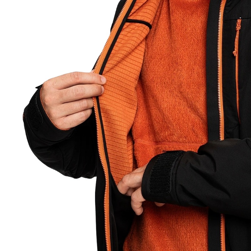 Resistente al vento, sfrutta la capillarizzazione inversa del tessuto a griglia per offrire un capo versatile, utilizzabile come secondo strato nei periodi freddi e come isolante nelle mezze stagioni.