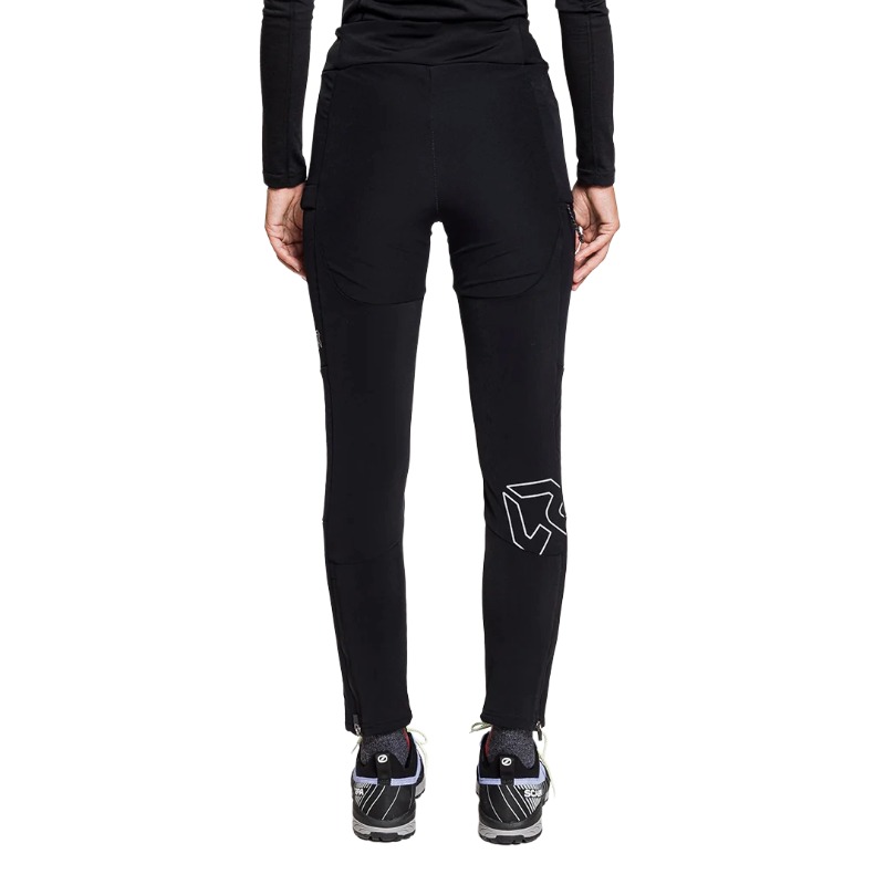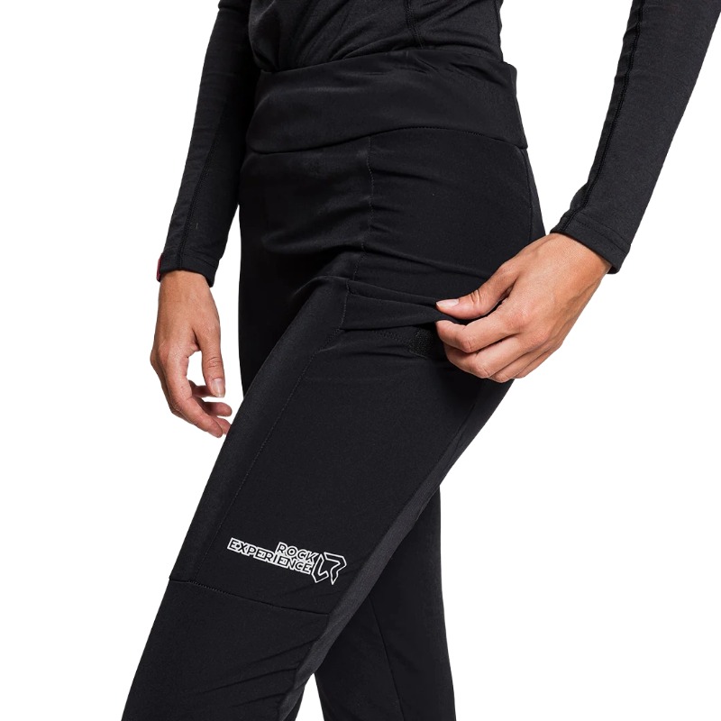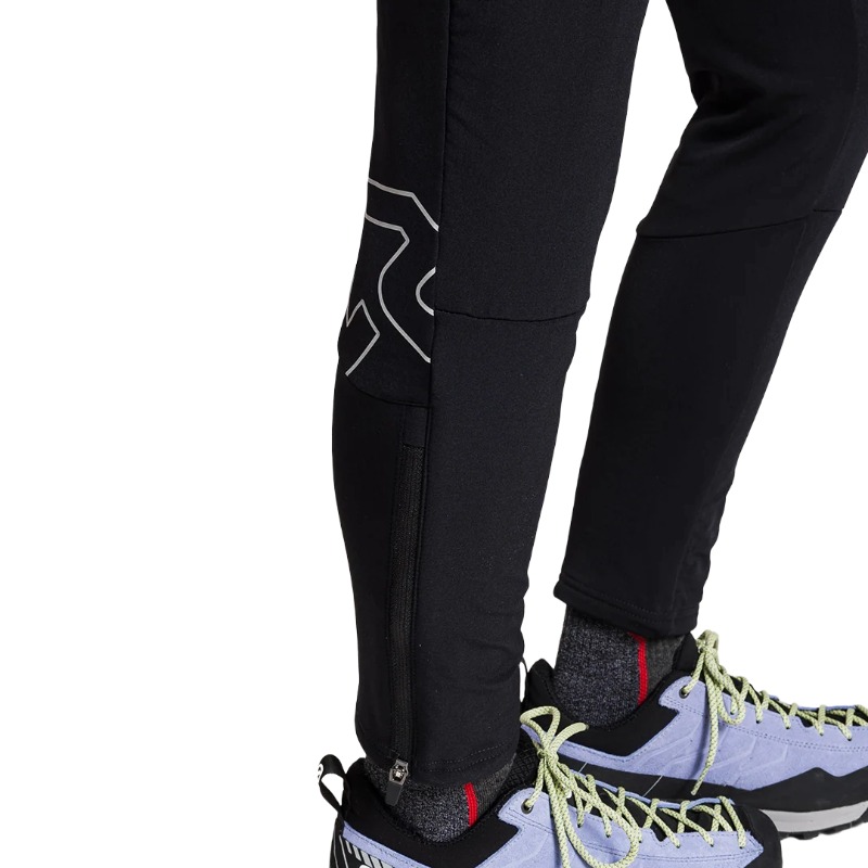 Presenta regolazione in vita con coulisse interna e apertura del fondo gamba con zip per adattarsi a diversi tipi di calzature, dalle scarpette da fondo agli scarponi da trekking.