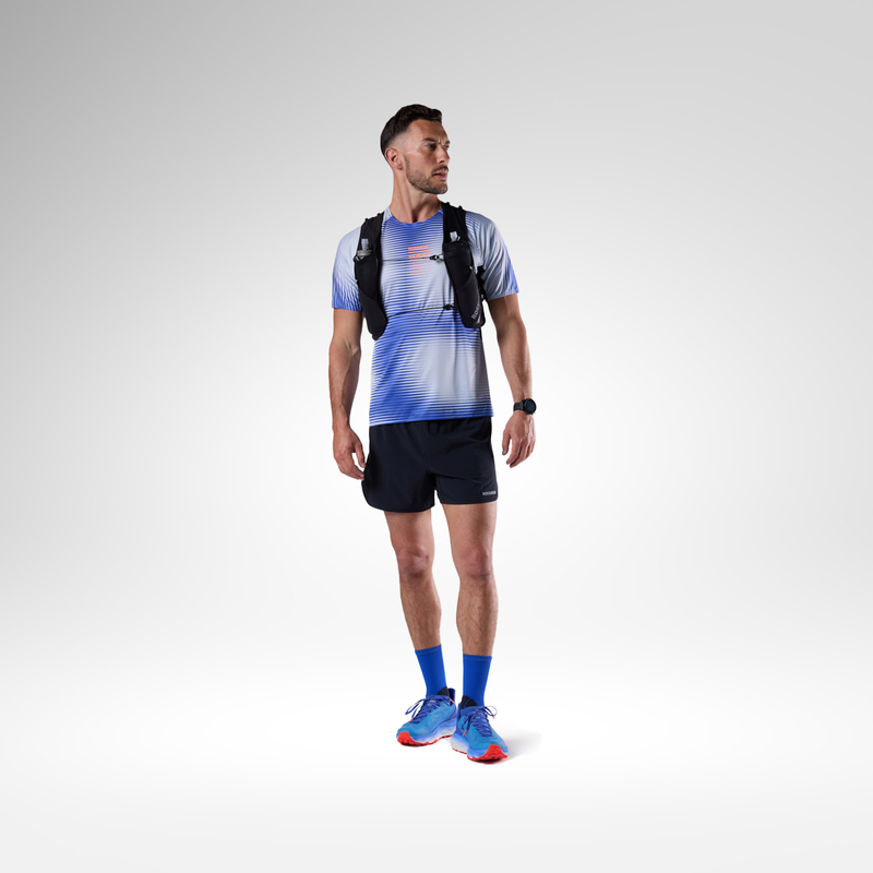 Il tessuto tecnico stretch in quattro direzioni segue naturalmente i movimenti del corpo, favorendo un’andatura fluida e dinamica anche quando il ritmo aumenta. Il materiale è così leggero da risultare quasi impercettibile durante la corsa.